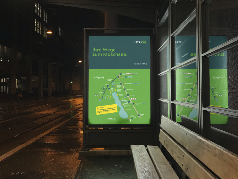 Für die Maschseeflotte entstand eine neu aufgebaute Grafik, ergänzt durch einen übersichtlichen Fahrplan für das Maschseefest sowie ein konsistentes Icon-Set. Das Ergebnis: eine visuelle Linie, die im großen Maßstab funktioniert und auch im Detail überzeugt.